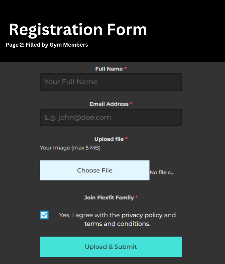 Only new, unregistered users can be submitted through the registration form. If a member’s subscription has ended or they need to renew, the system directs them to contact the Gym Admin / Gym Owner post their regular payments!